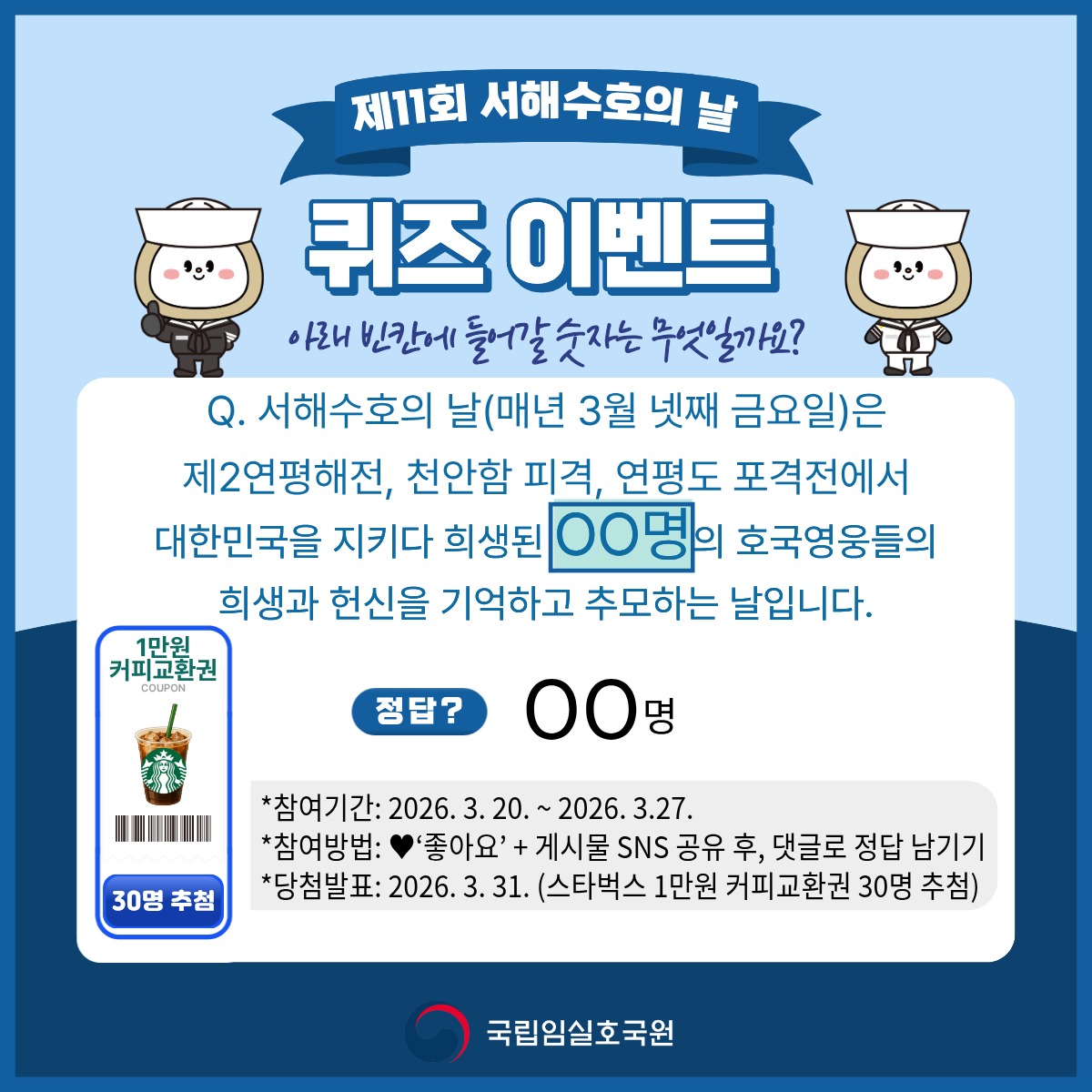 국립임실호국원 서해수호의 날 계기 인스타그램 퀴즈 이벤트