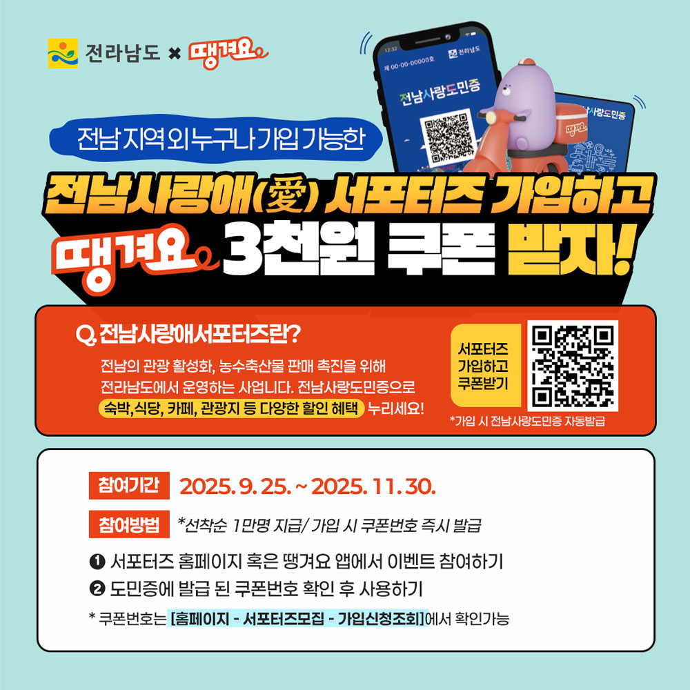 전남사랑애서포터즈x땡겨요 신규 가입 이벤트