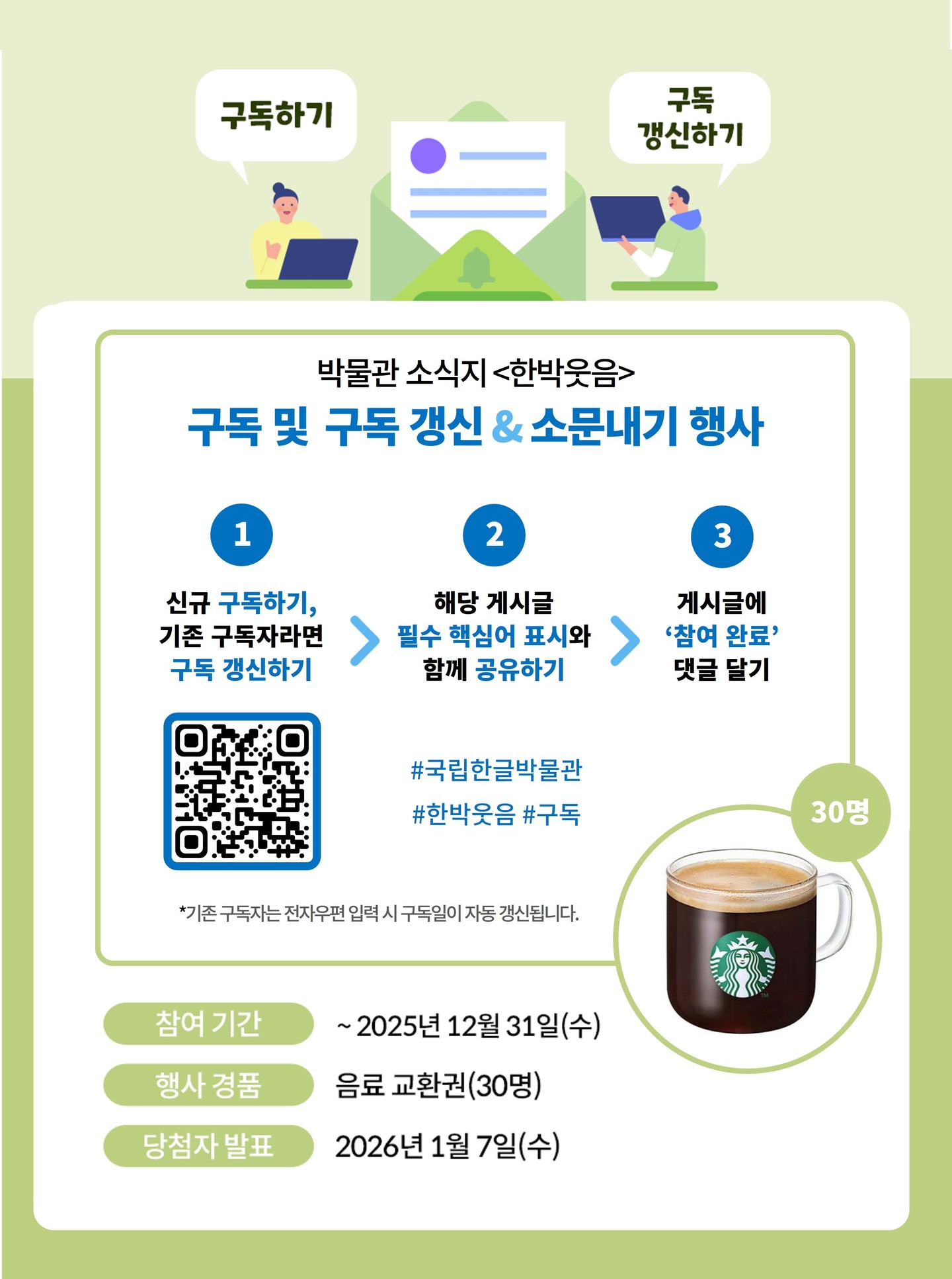 1. 국립한글박물관 소식지 <한박웃음> 신규 구독하기, 기존 구독자라면 구독 갱신하기!