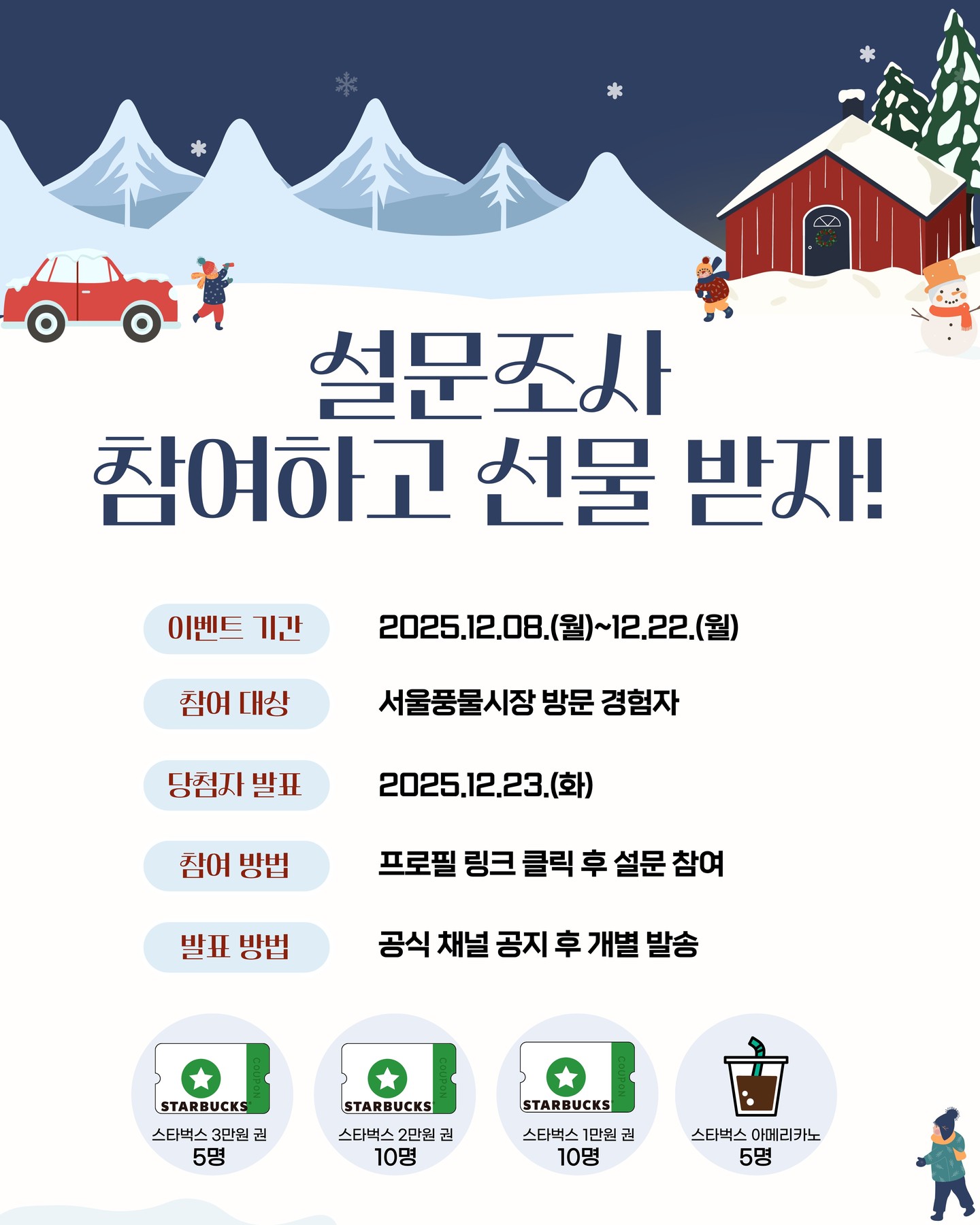 서울풍물시장 방문 경험 있는 분이라면 이벤트 참여하고 스타벅스 상품권 받아 가세요.